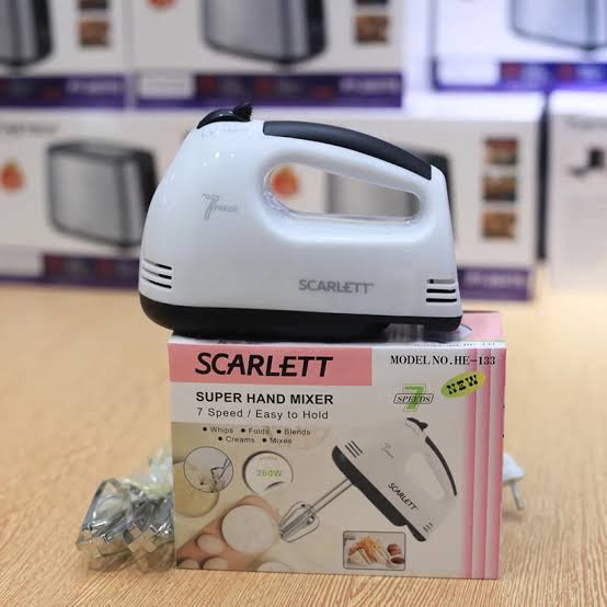 Scarlett_Electric Powerful Scarlet Beater-Hand Mixer 180Watt – Folding – Mixing – Whisking With 4 Hooks – 7 Speed