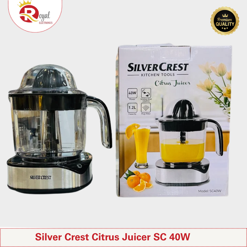 - Enjoy the taste of freshly squeezed citrus fruits with the Silver Crest Citrus Juicer SC40W. Designed for efficiency and ease, this high-quality juicer helps you extract maximum juice from oranges, lemons, limes, and grapefruits with minimal effort. Its sturdy construction and powerful motor ensure smooth operation, making it a must-have for every kitchen.