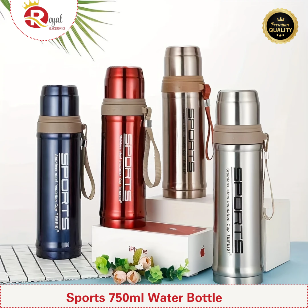 Stay hydrated in style with our Sports Water Bottle high-quality stainless steel vacuum-insulated Thermos ! Perfect for sports, gym, travel, or everyday use, this 750ml thermos keeps your drinks hot for 12 hours and cold for 24 hours, thanks to its double-wall vacuum insulation technology.